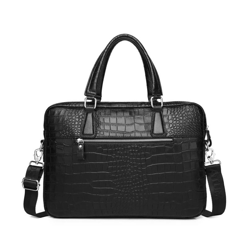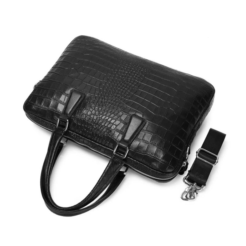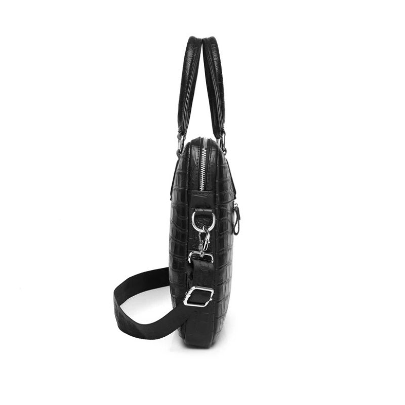 Cette sacoche porte document noire effet peau de crocodile est non seulement esthétique, mais aussi extrêmement pratique. Équipée d’une bandoulière réglable, cette sacoche en cuir vous permet de la porter confortablement à l’épaule ou en travers du corps, libérant ainsi vos mains pour d’autres tâches importantes.