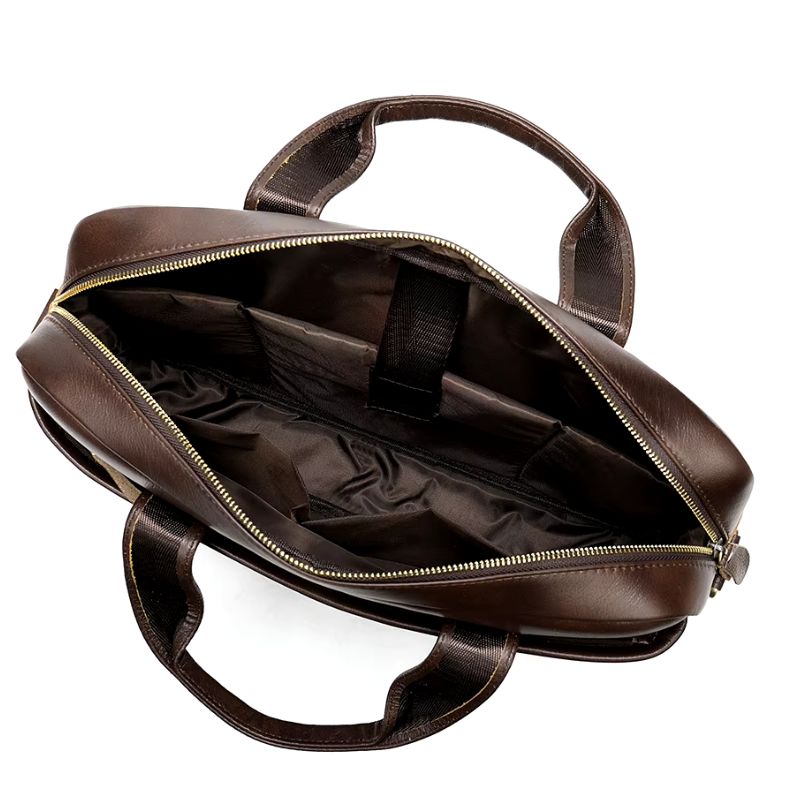 Cette sacoche porte-documents en cuir pour homme d’affaires allie élégance et fonctionnalité. Dotée de fermetures éclair robustes et fiables, elle garantit la sécurité de vos effets personnels. Son compartiment principal spacieux et bien organisé permet de ranger ordinateur, dossiers ou accessoires avec efficacité.